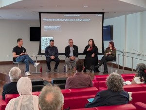 Our panelists were: Bella Buckley: HUC Student, Richie Bloomfield: HUC CGS Alumni, PhD Student, HUC Professor MOS, Geoff Read: HUC Professor History, Former HUC Dean of FASS, and Kate Graham: HUC Professor GLE, Specialist in Politics, Leadership and Public Policy.